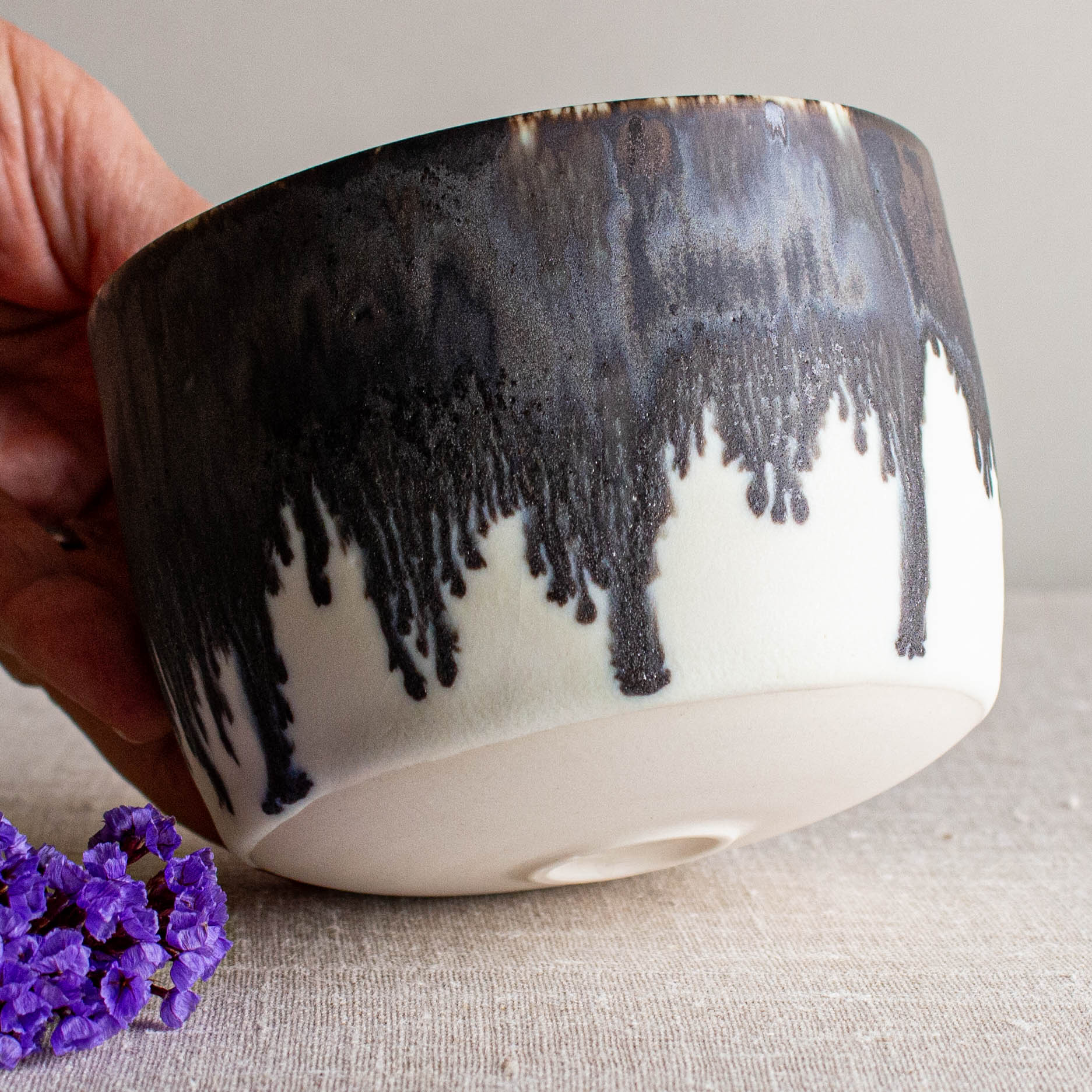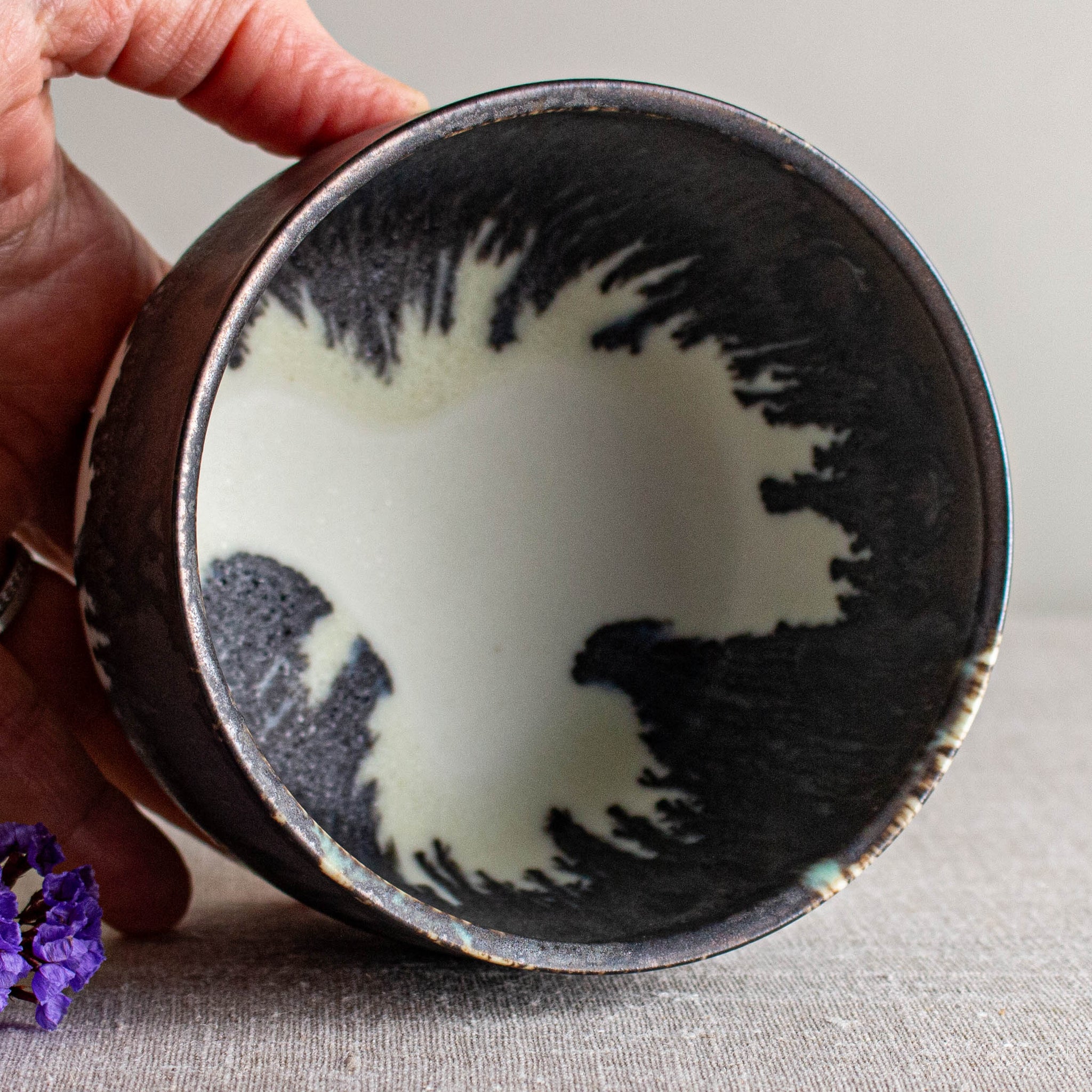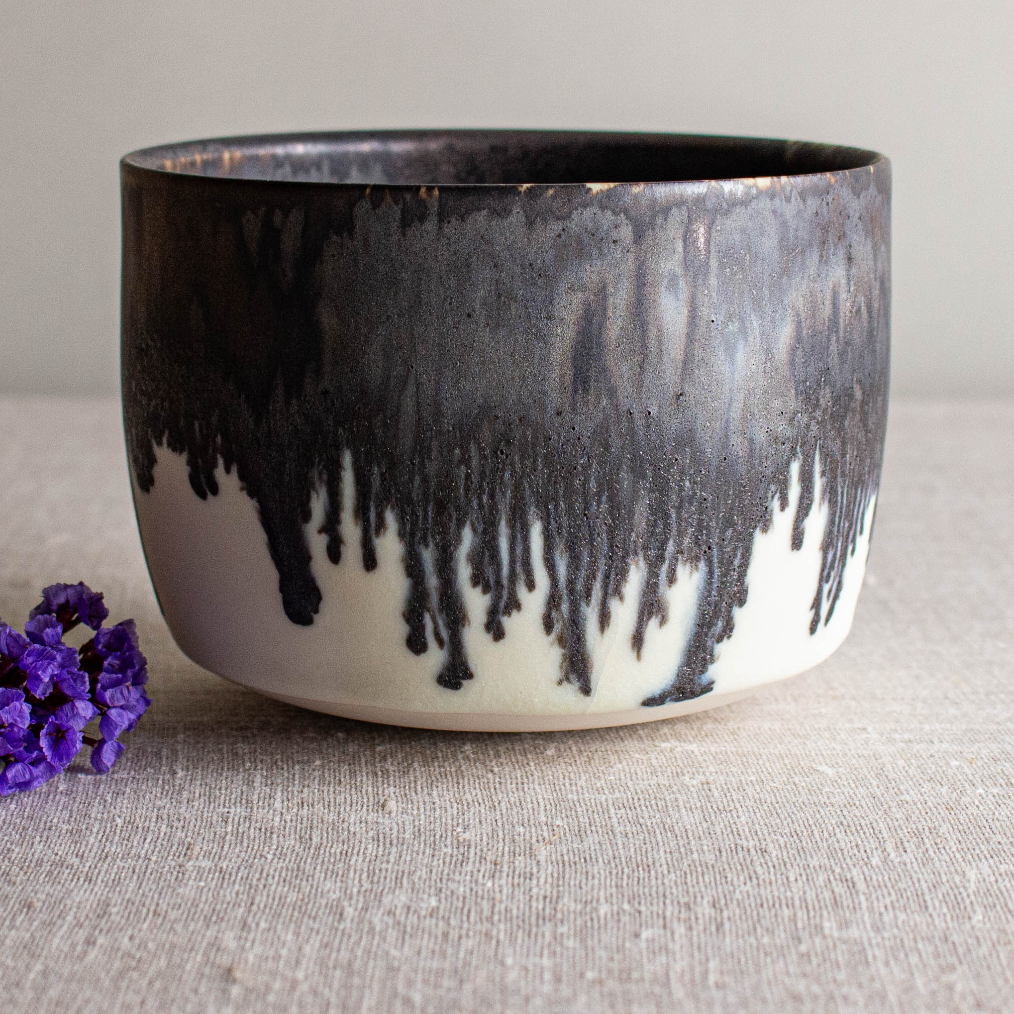Crystalline White Matte glazed vessel with a dip in my bronze glaze at the rim.
