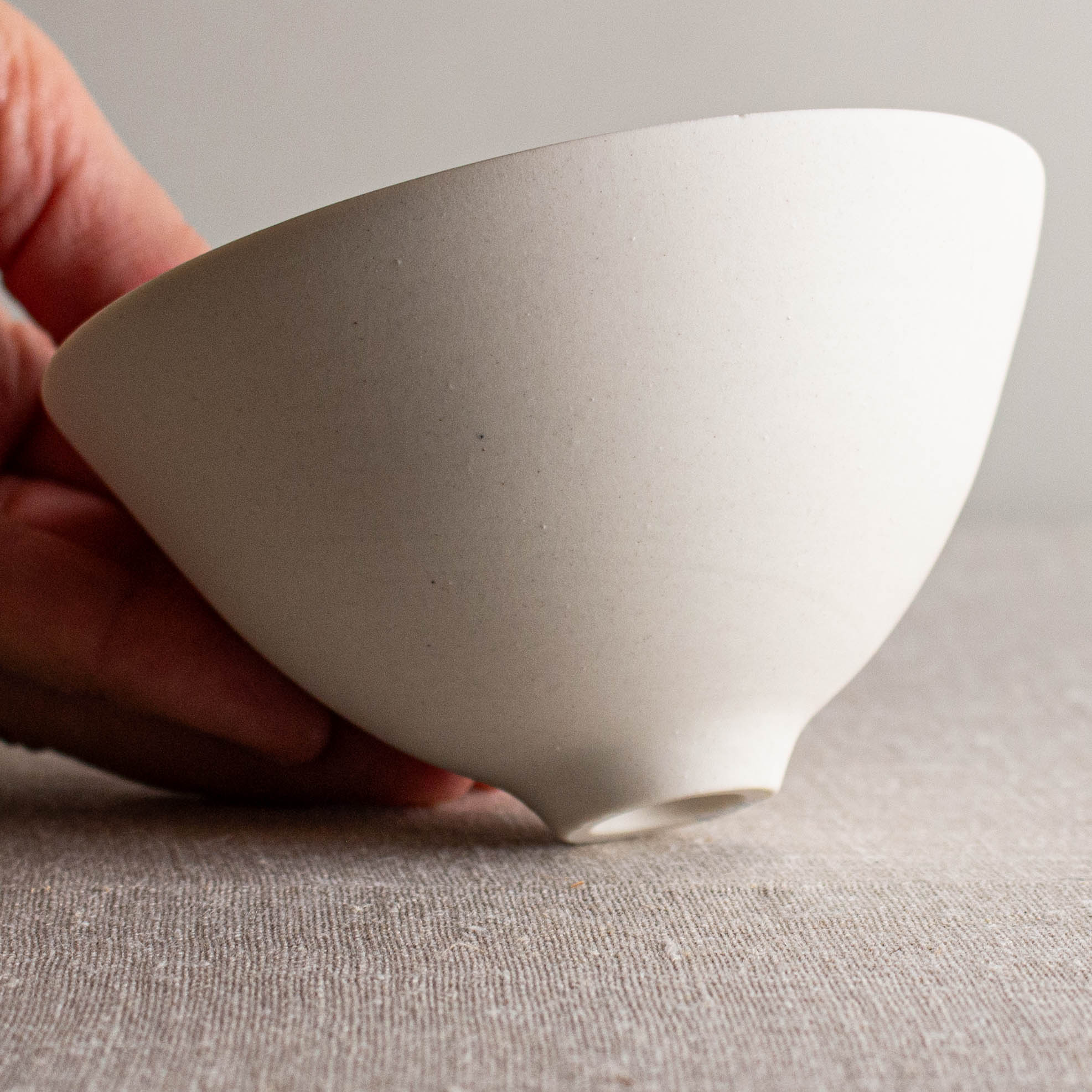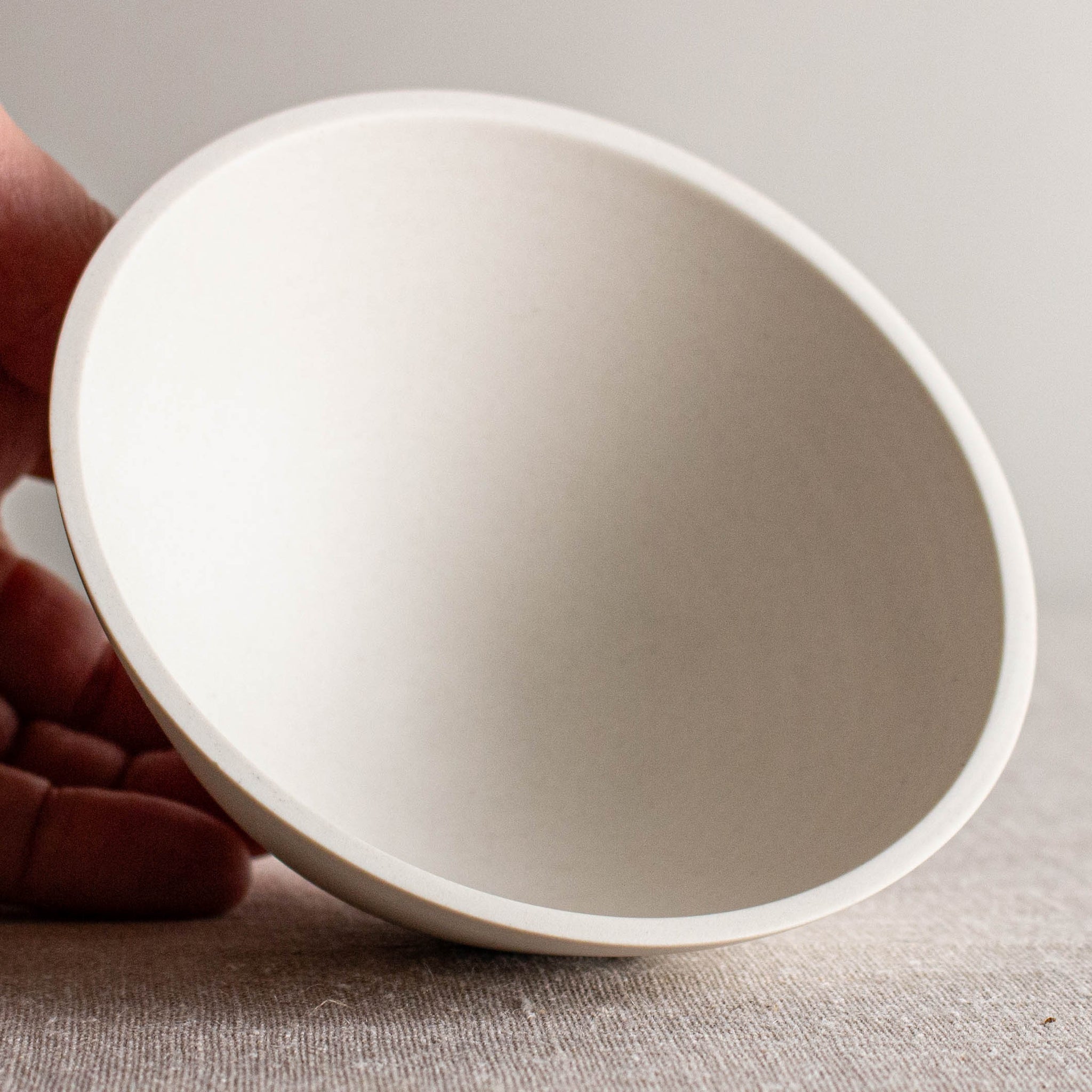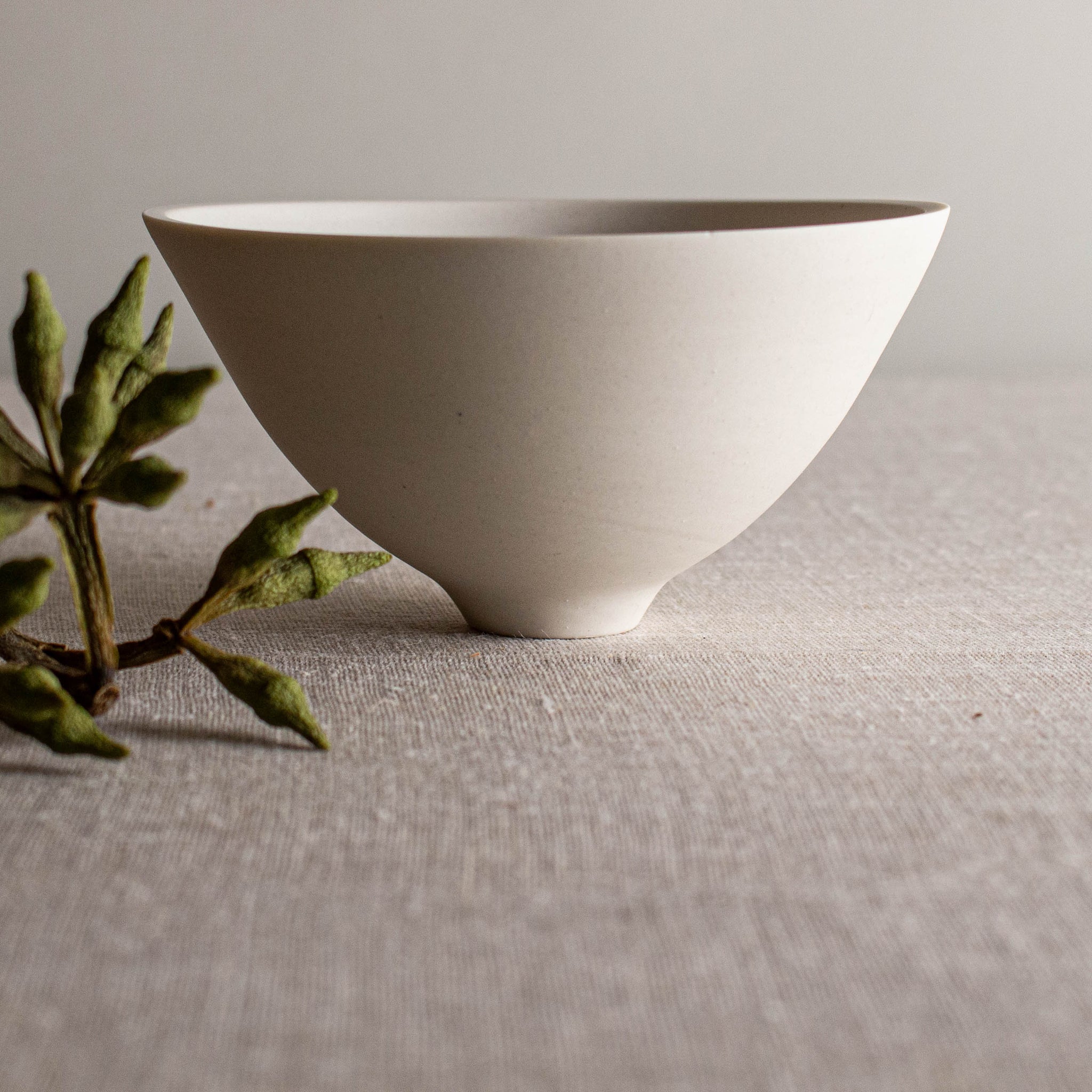Bare, smooth, white porcelain vessel. No glaze, just the lovely porcelain surface