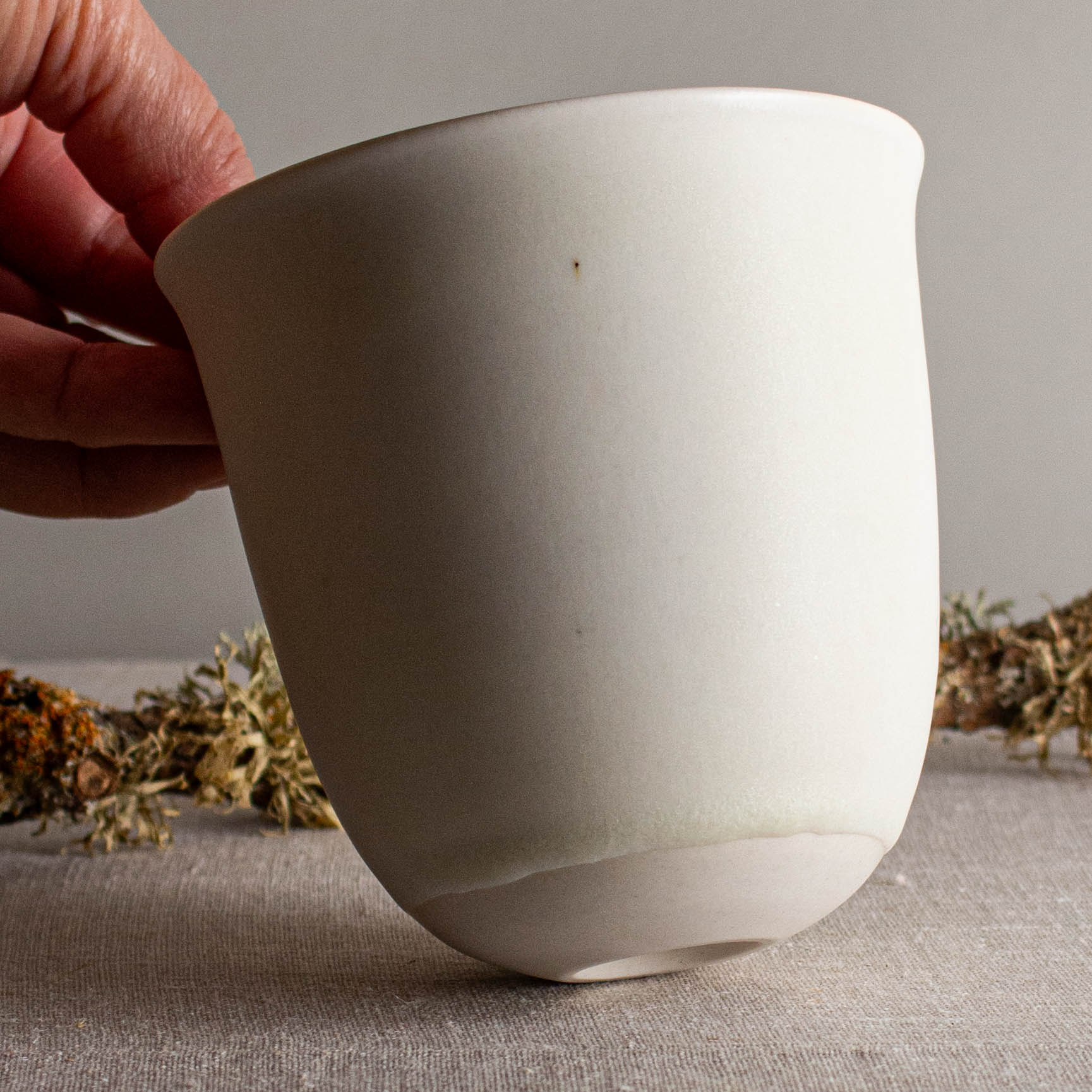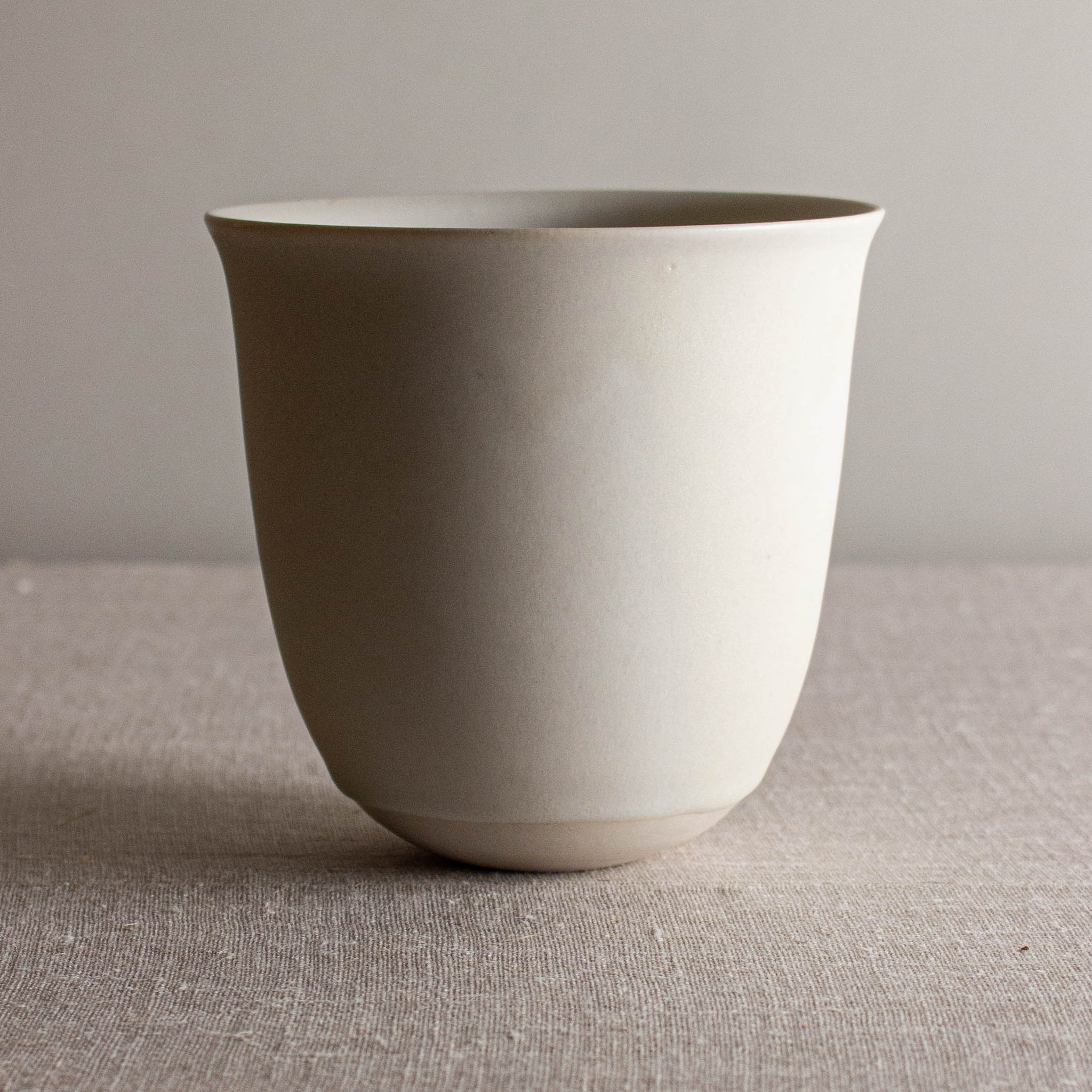 Wheel thrown, one of a kind. Glazed in sparkling, matte cream