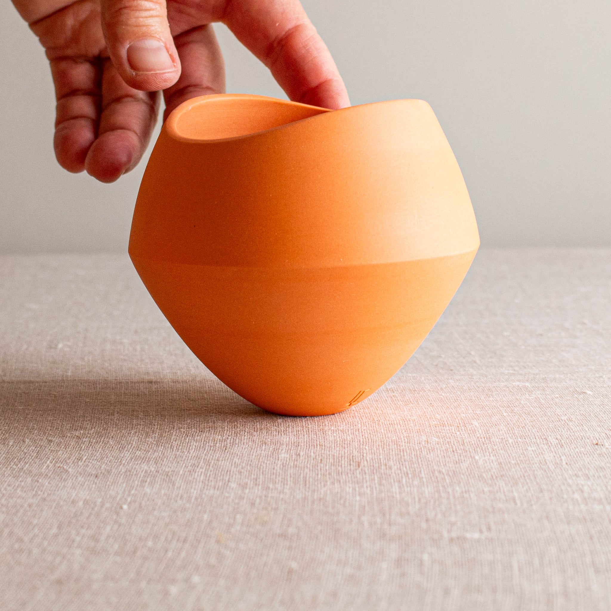 • Load image into Gallery viewer, Orange Porcelain Vessel with Altered Rim